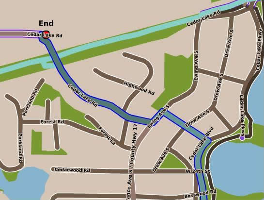 Take immediate right onto Cedar Lake Road S (signs say dead end, keep going)